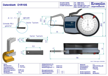 Palpeur rapide KROEPLIN D1R10S 0 10 mm, 0,005 mm, IP65, pr mesure paroi de tuyau