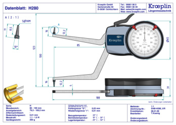 Palpeur rapide KROEPLIN H280 80 100 mm, 0,01 mm, IP65, mesure interne
